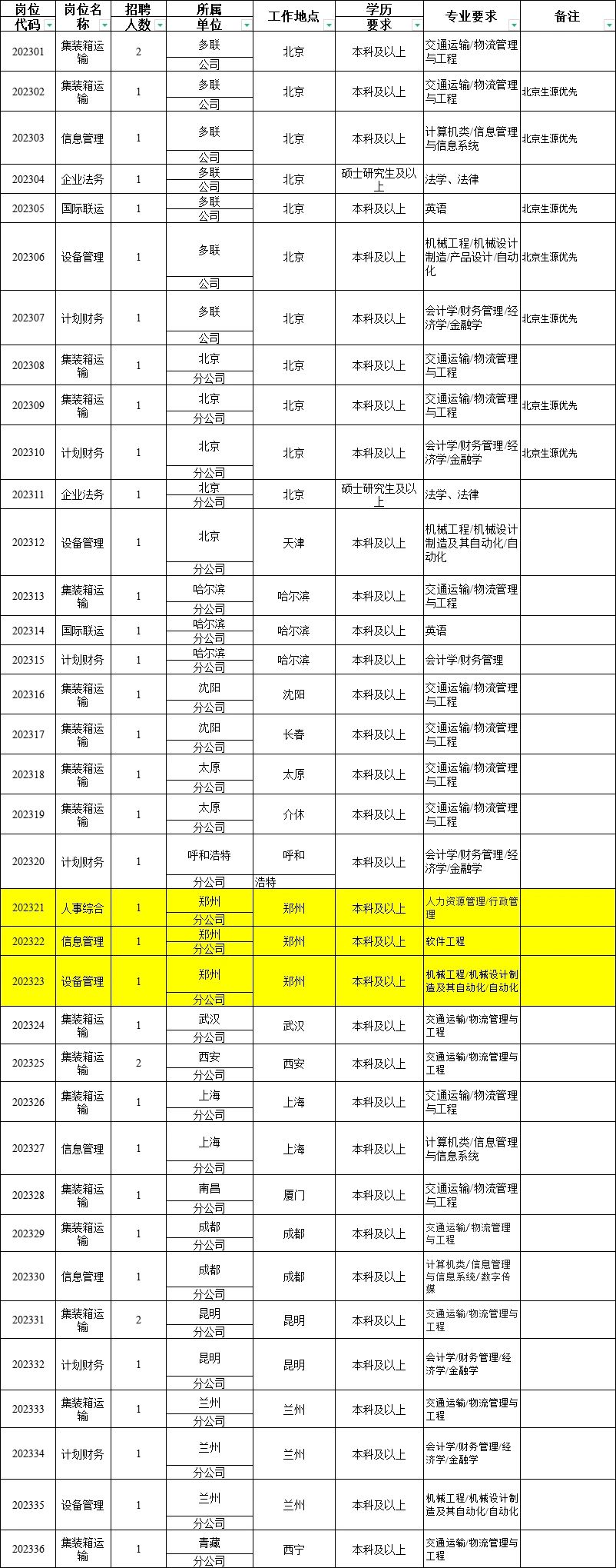中铁集装箱运输有限责任公司根据业务发展需要,现招聘应届高校毕业生,具体事宜公告如下: