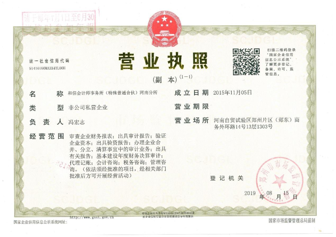 和信会计师事务所(特殊普通合伙)为原全国具有证券期货业务资质的40 家会计师事务所之一,主要服务于IPO企业、上市公司、新三板挂牌公司、投资基金等领域客户,全国范围内设有分支机构十余所。北京分所、河南分所团队规模200人左右