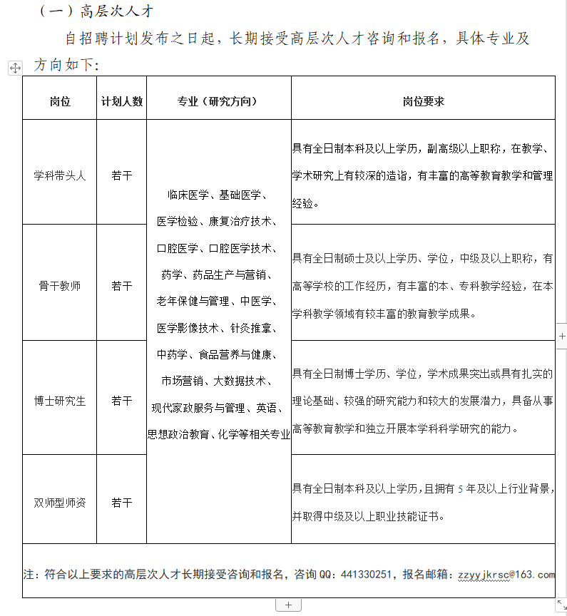 (一)自招聘计划发布之日起,接受应聘人员咨询和报名。应聘人员需自行下载并填写郑州医药健康职业学院招聘报名登记表(见附件或学校官网公告)。
