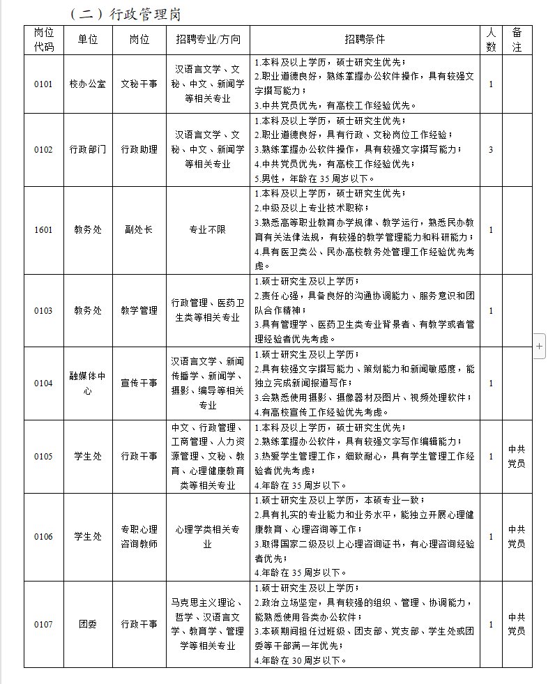 3.聘用人员须在学校要求的时间内提交材料、办理入职手续。逾期未报到的,将不再保留聘用资格。