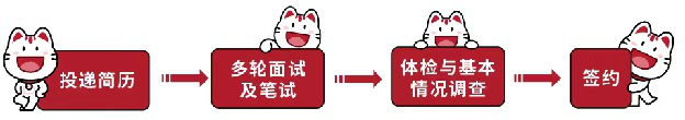 简历投递→简历筛选→统一笔试→多轮面试→体检→录用。