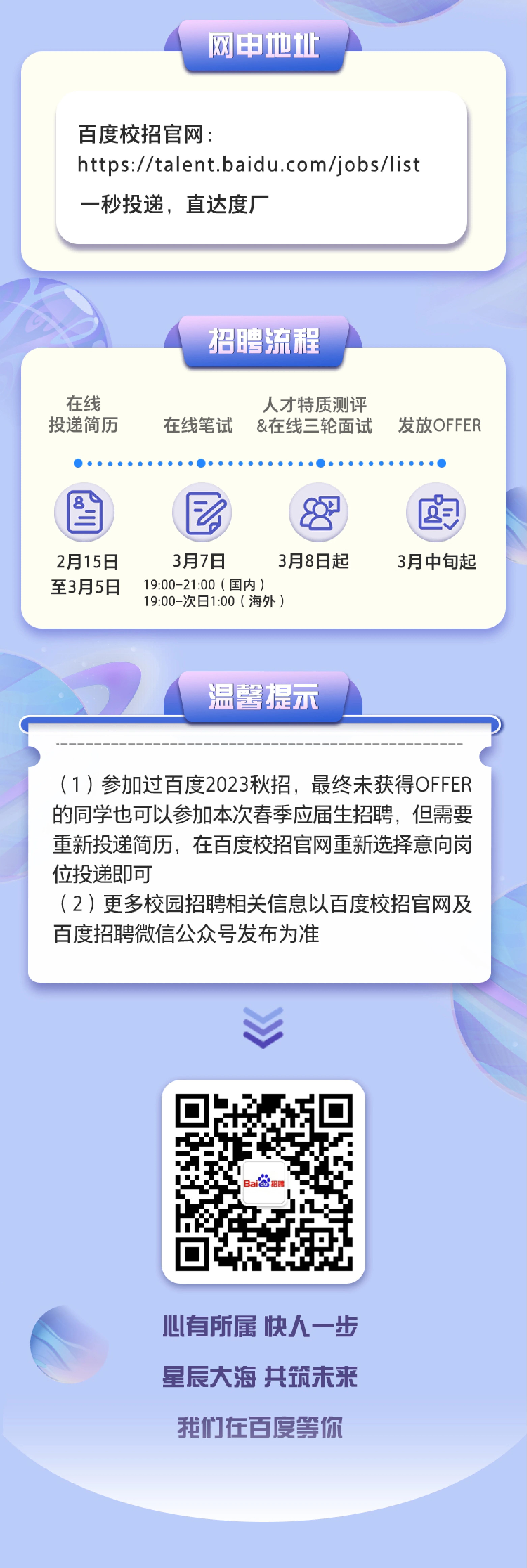 星辰大海 共筑未来 | 百度2023届校园招聘春季补录正式启动!【2.15-3.5】