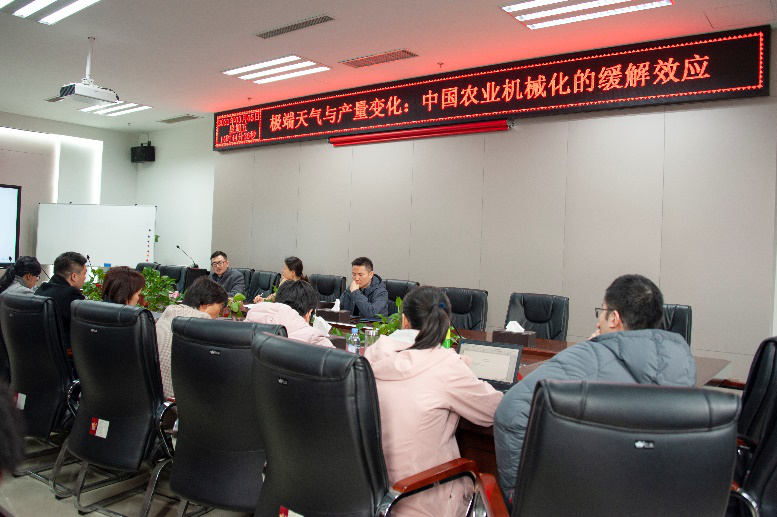 师生作学术报告,报告题目分别为《极端天气与产量变化——中国农业机械化的缓解效应》和《为什么农民施用那么多化肥?——基于气象风险的解释》。此次学术报告会在河南农业大学龙子湖校区德州扑克单机