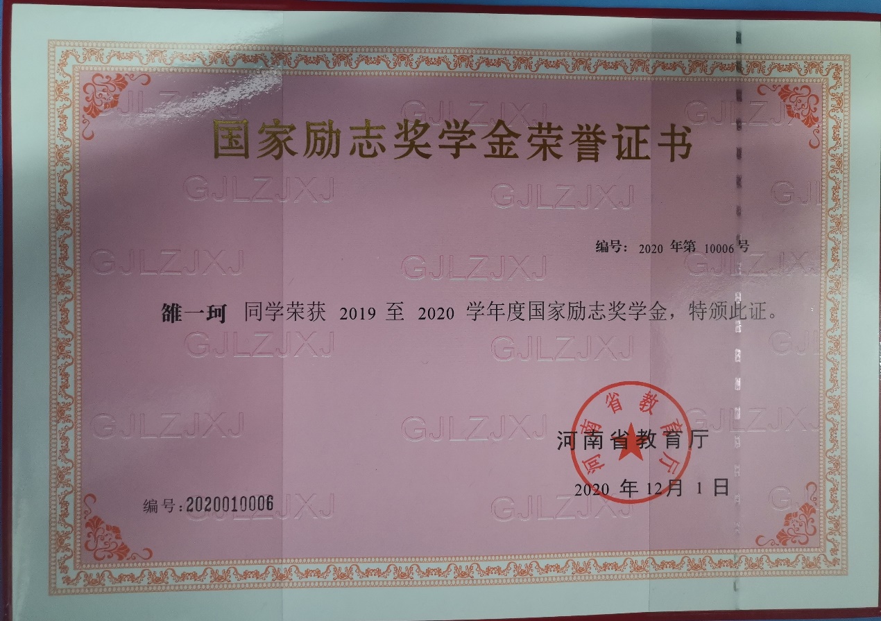 人生最曼妙的风景不是过去,也不是未知的以后,而是脚踏实地的当下。对雒一珂而言,国家奖学金的获得不仅是一种荣誉,也是辛勤付出的结果。荣誉的获得并不代表着结束,而是一种新的开始。她将以荣誉作为一种新的动力,继续给自己“充电”,勇往直前不止步。