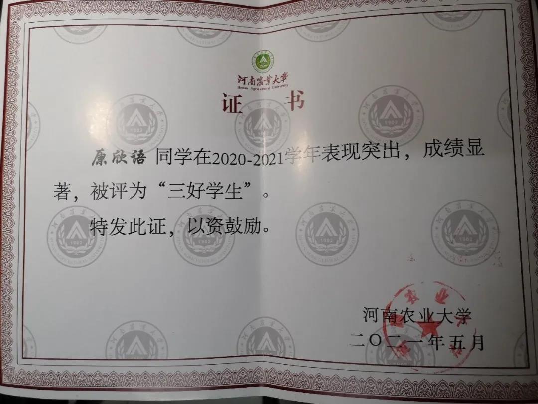 2019级农林经济管理1班学生,2021年度国家奖学金获得者。曾获得国家励志奖学金、校三好学生、院三好学生等荣誉,顺利考取了初级会计证书、英语四六级等相关证书。