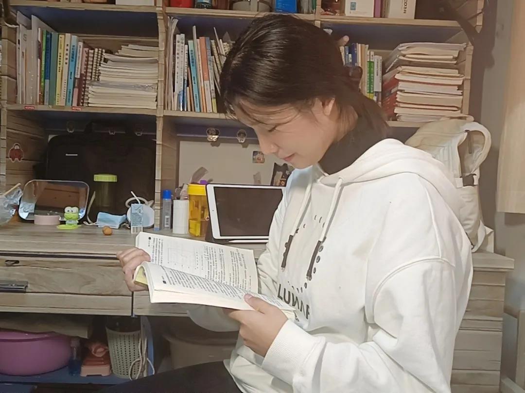 入校以来,她在学习方面刻苦勤奋,努力向上,坚持做到学一门爱一门。大学两年从坐在后排的被动听课者变成一个坐在前排的主动学习者。课下她积极交流,虚心求教,学习成绩始终保持在专业前几名。专业课学习之余她经常去图书馆自习,不断丰富其他业余知识。疫情期间,她也没有放松自己,坚持严格按照课表上课,认真做好课堂笔记,积极与老师互动反馈,努力做到在德、智、体、美、劳等方面全面发展。