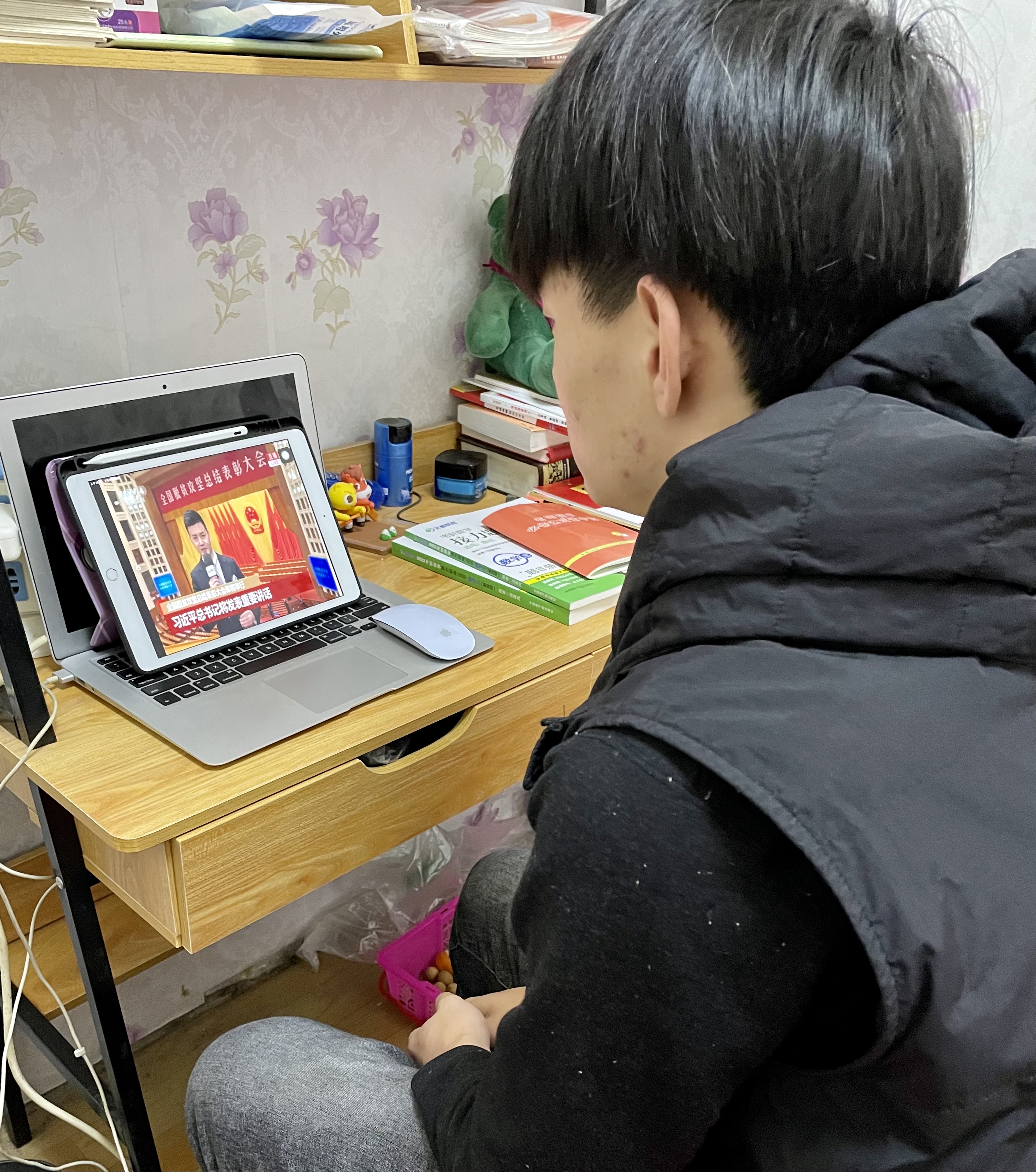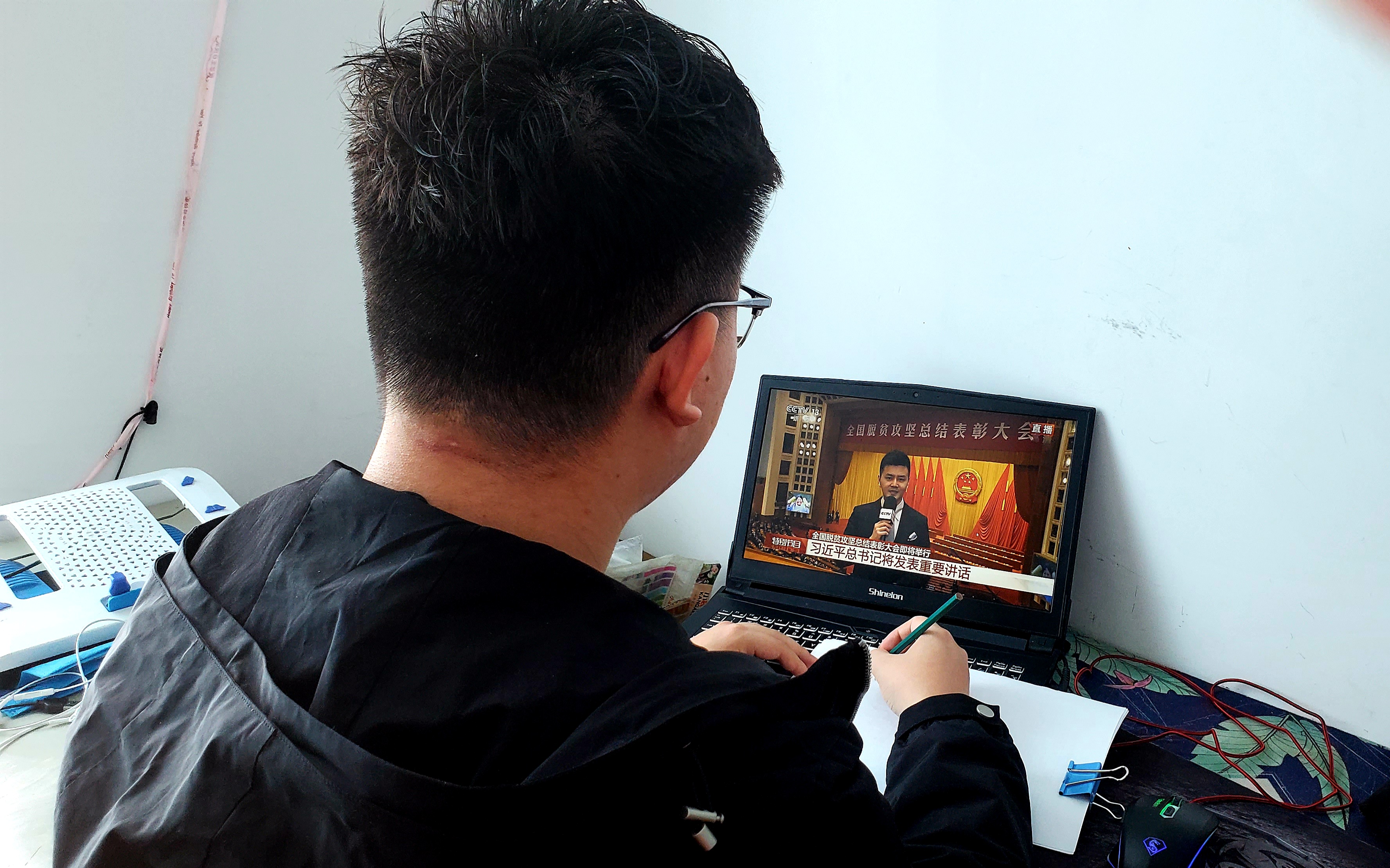 学院学生在家收看表彰大会