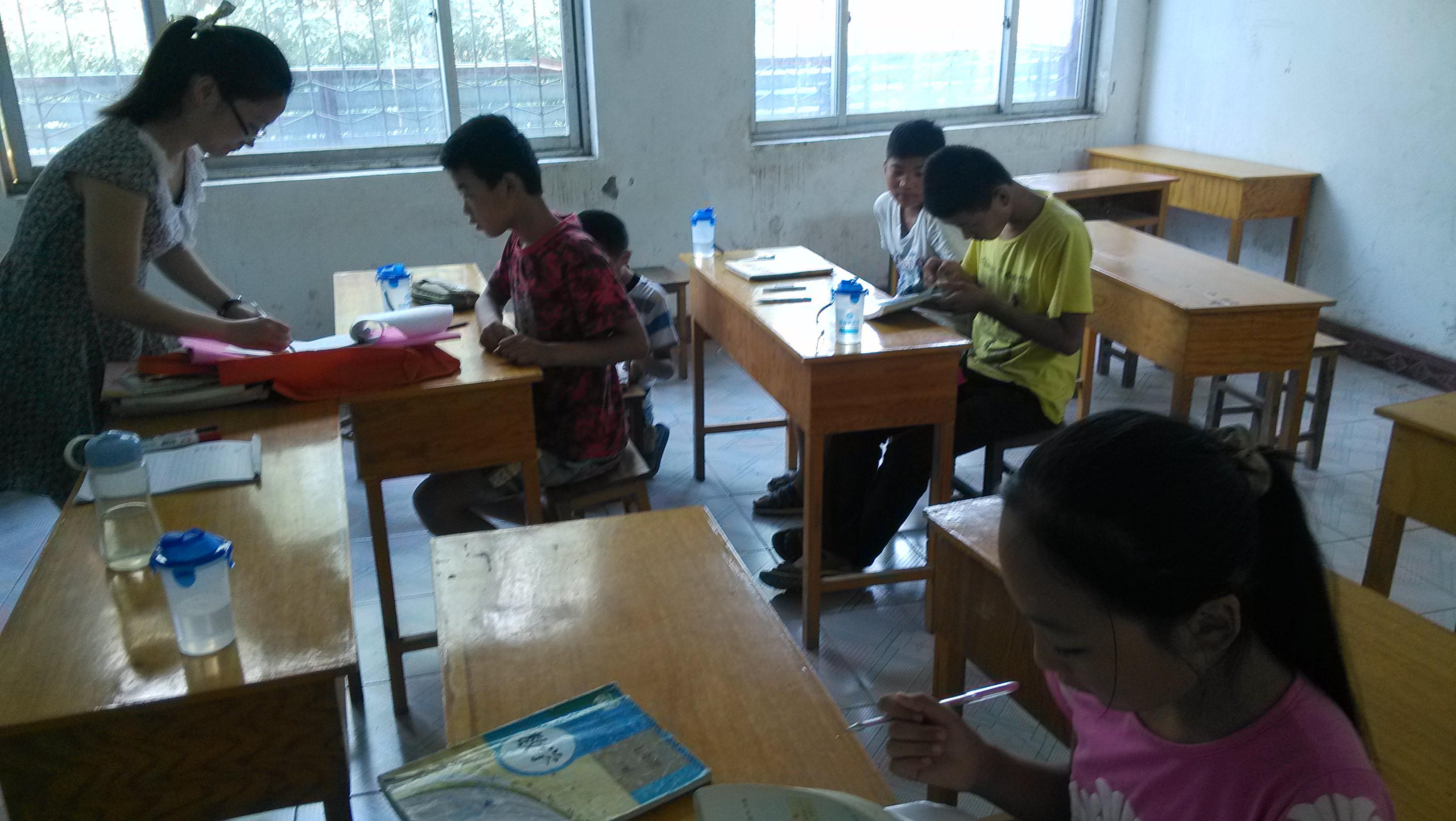 2014年7月6日,赴新乡义务补课服务团到达目的地,经过调研与讨论,最终团队与当地一个辅导班合作,决定对当地学生实施义务补课计划,从而帮助学生们更好的理解知识,提高能力。在进行了明确的分工之后,大家各司其职,做好自己的本职工作。讲台上有他们耐心讲解的身影,课间有他们认真讲题的身影。