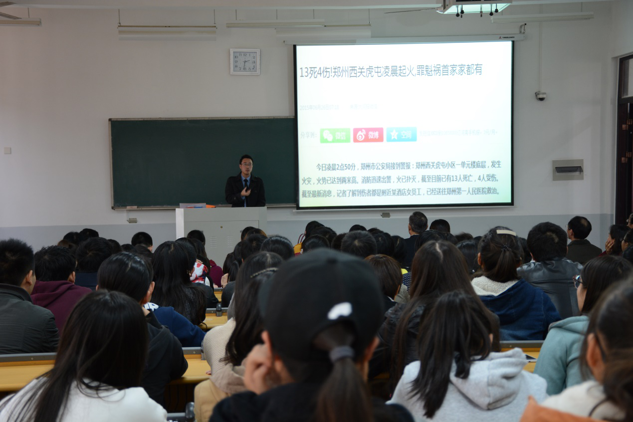 消防安全知识讲座在繁塔楼E-311举行。河南省消防协会特聘教员尹文博教官作为嘉宾主讲此次讲座。学院领导班子成员、学院老师到场出席,德州扑克单机