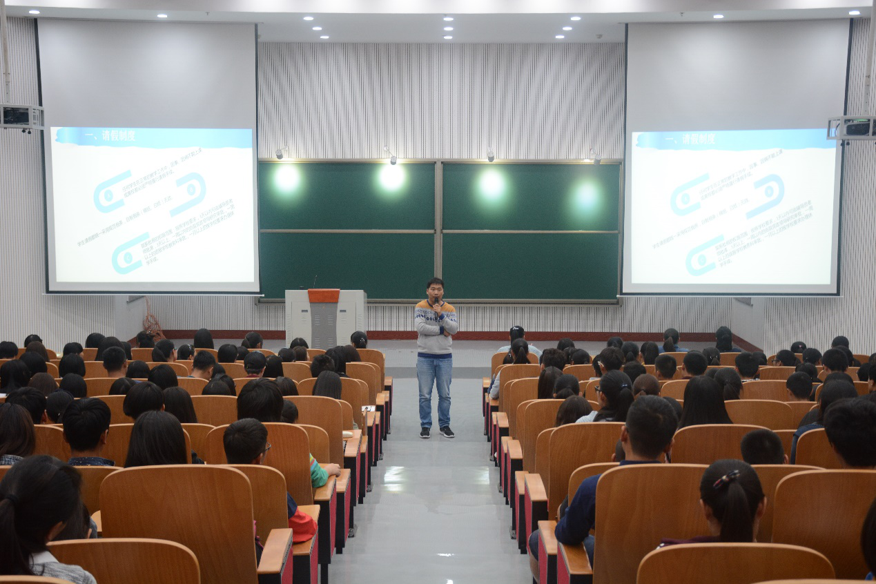 “学生安全管理及日常礼仪”主题讲座在繁塔楼B座大教室-1举行。讲座由院团委书记王金铎主讲,学院2016级全体新生到场参加。
