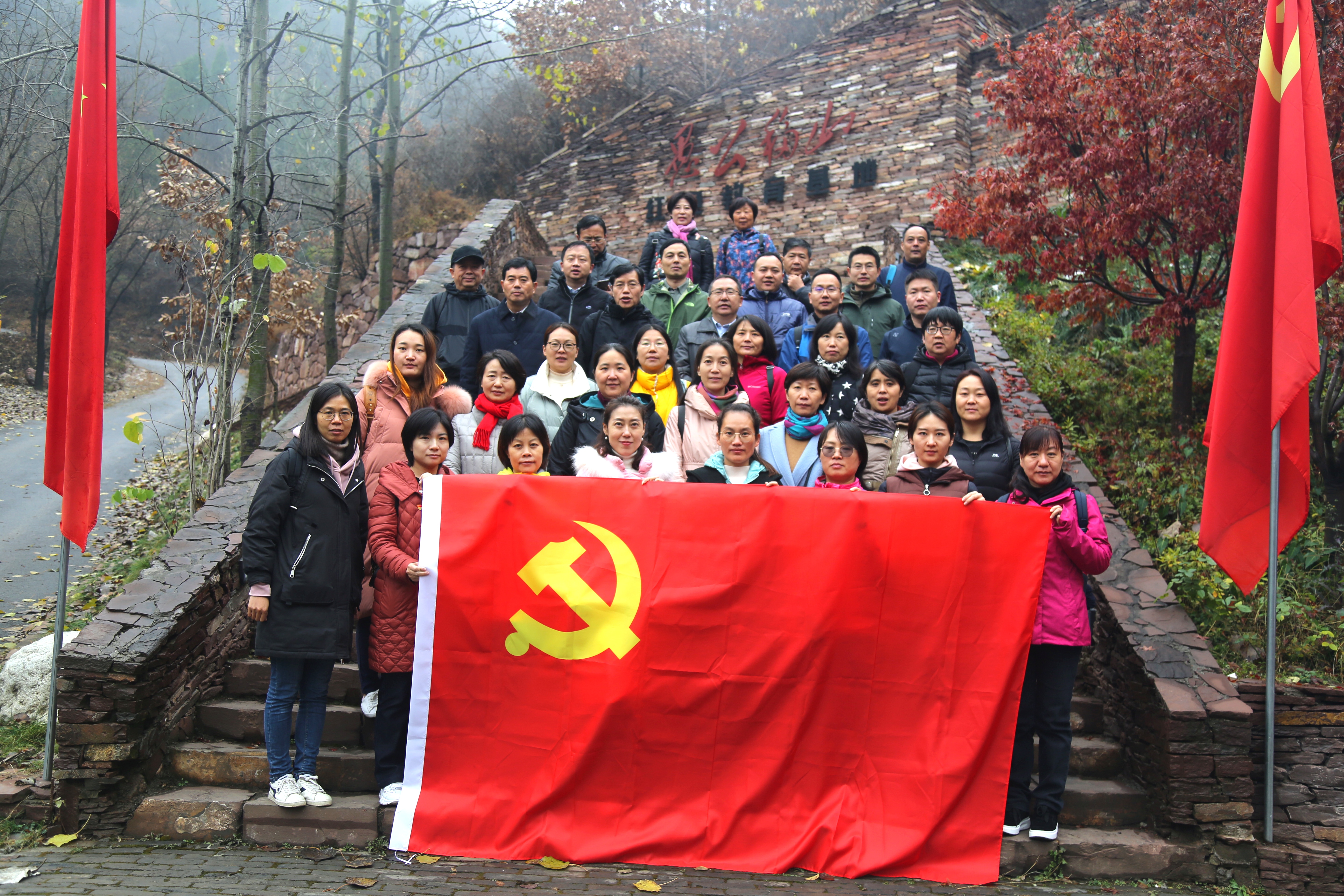 在愚公移山红色教育基地,党员同志们参观了愚公移山群雕、愚公故居等教学点,认真聆听讲解员对每一个教学点的详细介绍,感悟到愚公不畏艰难、自力更生、子孙相继、挖山不止的伟大精神,是中华民族宝贵的精神财富,是党团结带领人民战胜一切艰难险阻、从胜利走向胜利的强大思想引领。同时,在新时代中国特色社会主义建设中,愚公移山精神具有新的时代内涵,更需要每个党员砥砺践行愚公移山精神。在愚公移山铁卷广场,大家重温了《愚公移山》原文,愚公精神深深打动了在场的每位同志,大家深深意识到要像愚公全家叩石垦壤移山那样齐心协力,要像愚公寒暑易节、挖山不止那样攻坚克难,要像愚公移山子子孙孙无穷匮那样持久为功。在放映厅,大家观看了《愚公移山是一种觉悟》专题片,聆听了老一辈人对愚公精神的诠释解读,革命烈士们抛头颅、洒热血的革命精神,震撼着每名党员的内心。在觉悟院鲜红的党旗前,院党委书记牛青杨带领大家重温了入党誓词,高握右拳,重温入党誓词,将教育人的责任担当融入到铮铮誓言中。