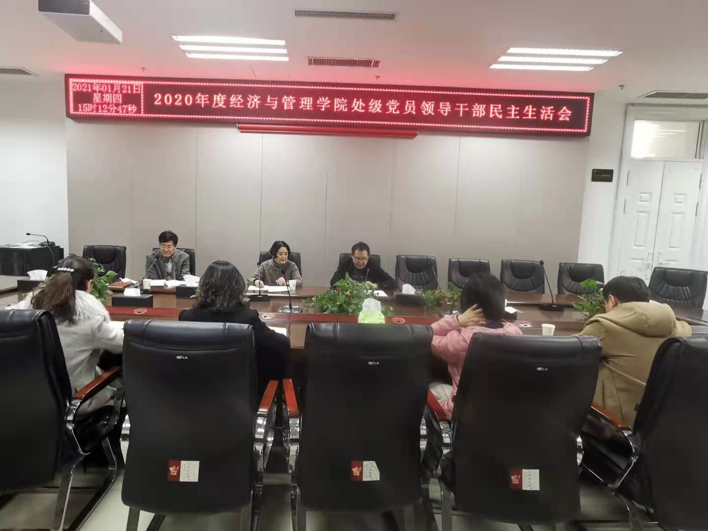 校党委宣传部部长王红艳对学院处级党员领导干部民主生活会进行了点评和总结。她表示,经管学院本次处级党员领导干部民主生活思想认识到位,对问题的分析也比较准确,取得了预期效果。并对院领导班子提出四点意见建议:一是要坚持规范党委会和党政联席会制度,进一步提升学院的治理能力,做到领导到位,运行到位。二是要重视思想建设,提升核心凝聚力,做到班子团结和谐步调一致。三是要强化履职担当,提升事业发展的竞争力,以党建推动学院高质量发展。四是要加强党风廉政建设,守住底线,不碰红线,勇攀高线。