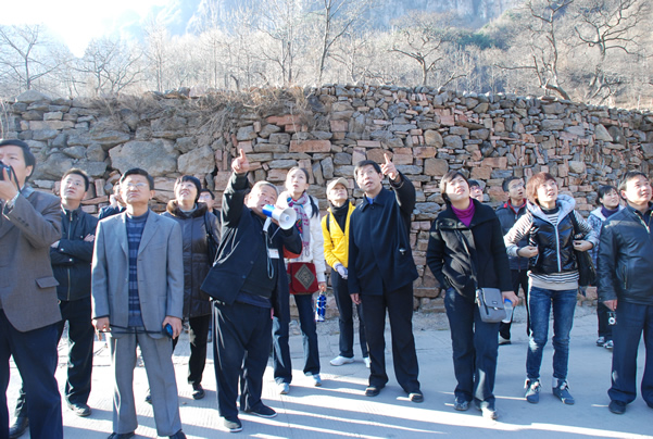 座谈结束后,大家在宋书记的带领下参观了郭亮影视村和郭亮洞等景点。郭亮影视村先后有《清凉寺的钟声》、《走出地平线》、《倒霉大叔的婚事》、《举起手来》等影视作品将这里选为外景地。在参观郭亮洞时,大家看见了当时便于清排施工石渣的形状各异的天窗,如今已经成为通风透光的观景台。党员们站在为郭亮村的经济发展与外界的沟通奠定基础的洞内,被绝壁上的隧道再次震惊,被愚公移山的壮举深深感染。