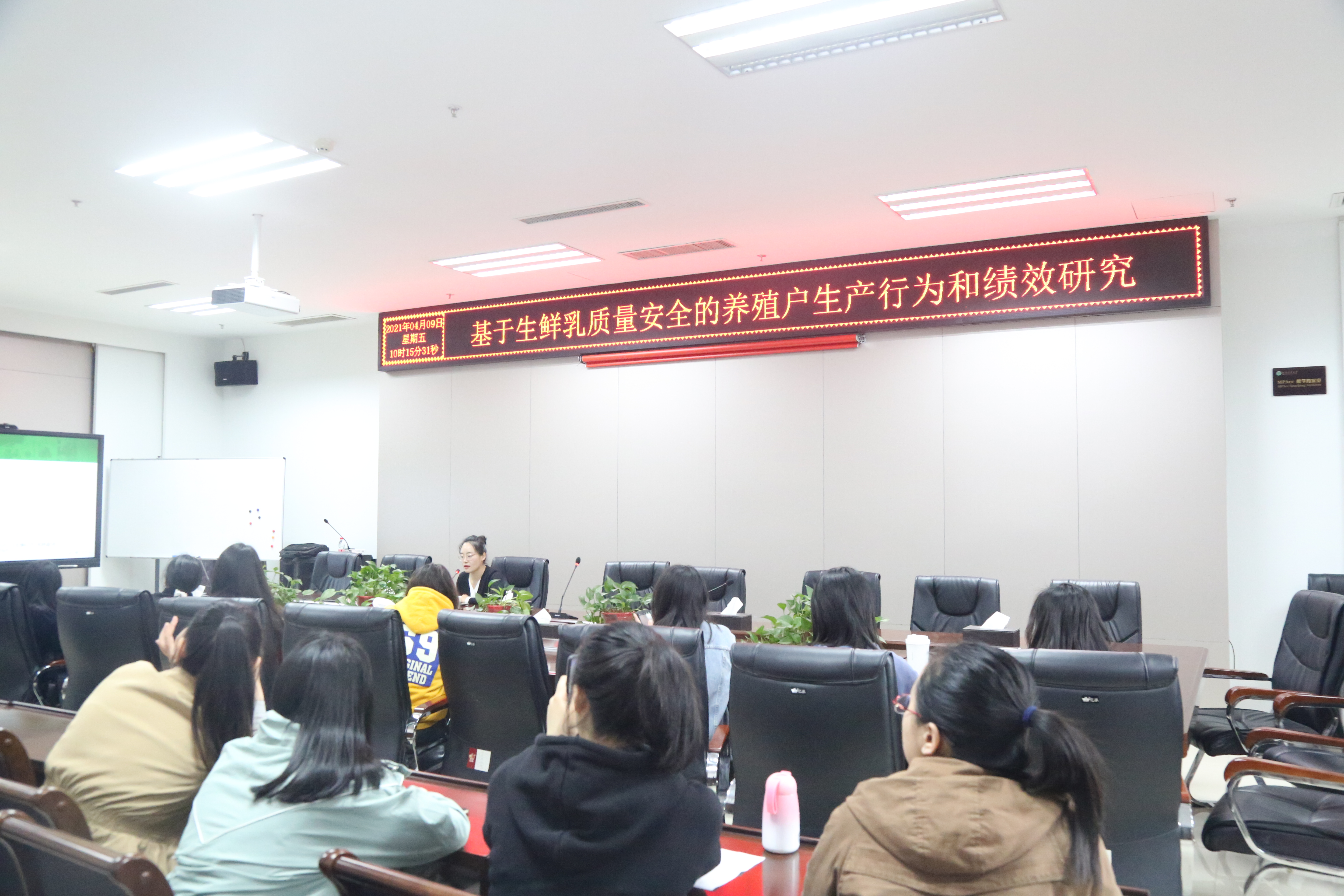 报告会上,杨欣然从中国奶业生产结构及其变化趋势、奶业产业结构对养殖户安全生产行为和绩效的影响、养殖户的安全生产行为对生产绩效的影响三个方面展开论述,分享自己的学习经历与研究过程,使该院师生认识到中国奶业发展现状,了解到养殖户安全生产行为与生产绩效之间的关系。杨欣然博士指出,为推进奶牛养殖适度规模化和标准化建设,鼓励家庭散养模式转型为家庭牧场,应严格执行“优质优价”的定价原则,建立成本共担机制,提升奶农管理能力,提高监管效率,并完善制度机制。