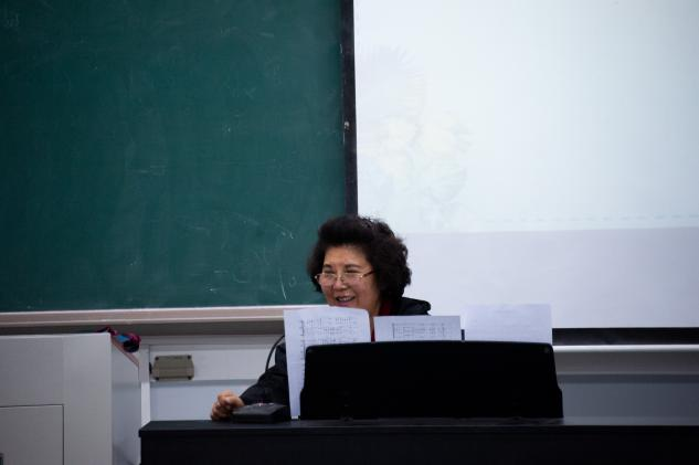 上午,课堂伊始,庞教授用形象生动的语言为同学们讲解如何正确发声。发声练习过程中,庞教授指出部分同学的不足之处,耐心教导,帮助在场同学调整状态。随后,庞教授通过钢琴弹唱带领全场同学深情合唱,将律动、节奏、听音等练习融入合唱之中,她指出和声音准训练很重要的一点是各声部间能在演唱时互相听到对方的声部,找到共鸣。为了让同学们更好地体会到合唱魅力,庞教授引导同学们轻声合唱,既使其跟准节奏,又解决了声部线条问题。全体同学整齐划一,各个声部相互配合、应和,为歌曲平添多重层次。一遍遍的练习,一次次严格的纠错,每一分钟的流逝,都伴随着同学们的提高,都浸润着激昂的歌声。下午,庞教授带领同学们对歌曲进行分部练习,指出要保持正确的呼吸节奏,灵活控制气息,保持良好的歌唱状态。练习时,庞教授提醒要学会跟上指挥,尽量做到咬字、吐字准确清晰,同时也要把握歌曲情感。庞教授用生动有趣的语言向同学们教授胸腔共鸣、口腔共鸣练习法,同学们反复练习,共同感受音乐的魅力。最后,庞教授希望同学们每天坚持多听歌曲、练习气息,找到音准,体会到声音的共鸣。现场气氛活跃,同学们沉浸投入。本次课堂在同学们热烈的掌声中落下帷幕。