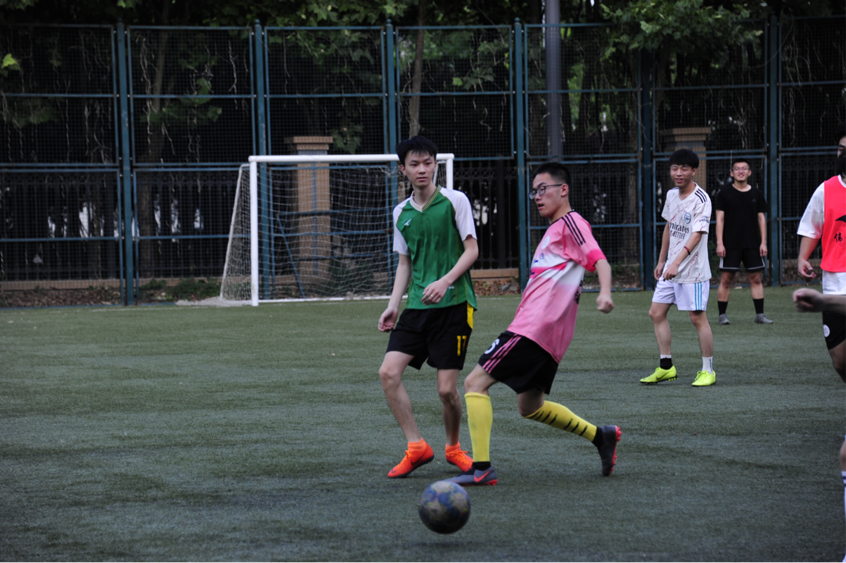 5月31日,随着裁判一声哨响,毕业生足球比赛正式开始。比赛伊始,双方球员都保持试探态度,打得十分保守,随着对彼此球风的深入了解,比赛进程迅速拉快,赛场氛围激烈紧张,球员们渐入佳境。在进球的瞬间,掌声雷动,将赛场的氛围推向高潮。经过激烈的角逐,最终大四和大一两支队伍获得此次比赛的胜利。