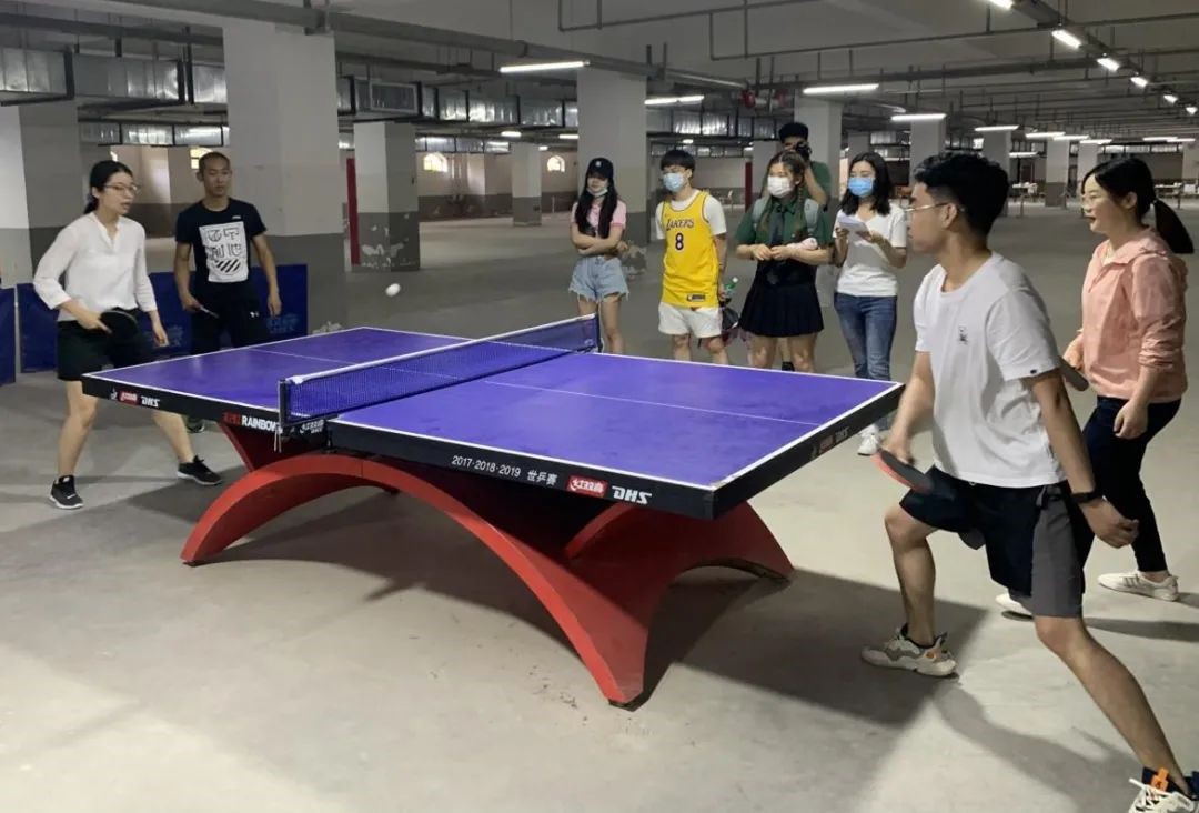 于体育馆负一楼举行爱“乒”才会赢乒乓球比赛,全体硕士研究生与博士研究生踊跃报名,现场气氛热烈。