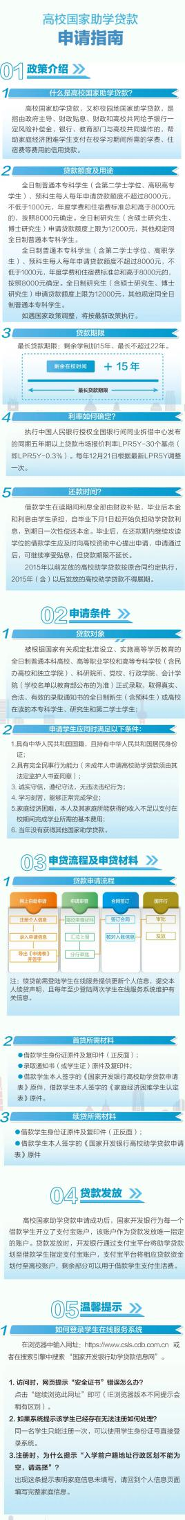 一、贷款范围和额度贷款范围为全日制普通本科高校的本专科学生、第二学士学生、研究生和预科生。全日制本专科学生(含第二学士学位)每人每年不超过8000元、全日制研究生每人每年贷款额度不超过12000元。具体贷款额度按照学费、住宿费标准据实综合确定。