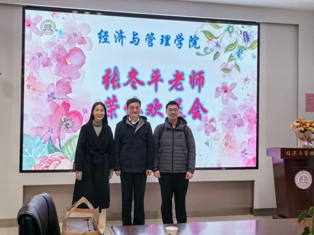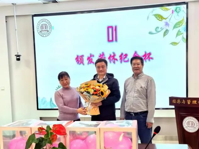 伴随着热烈的掌声,院长马恒运为张冬平老师颁发了荣休纪念杯,院工会常务副主席张锋老师献上鲜花表达感谢与祝福。