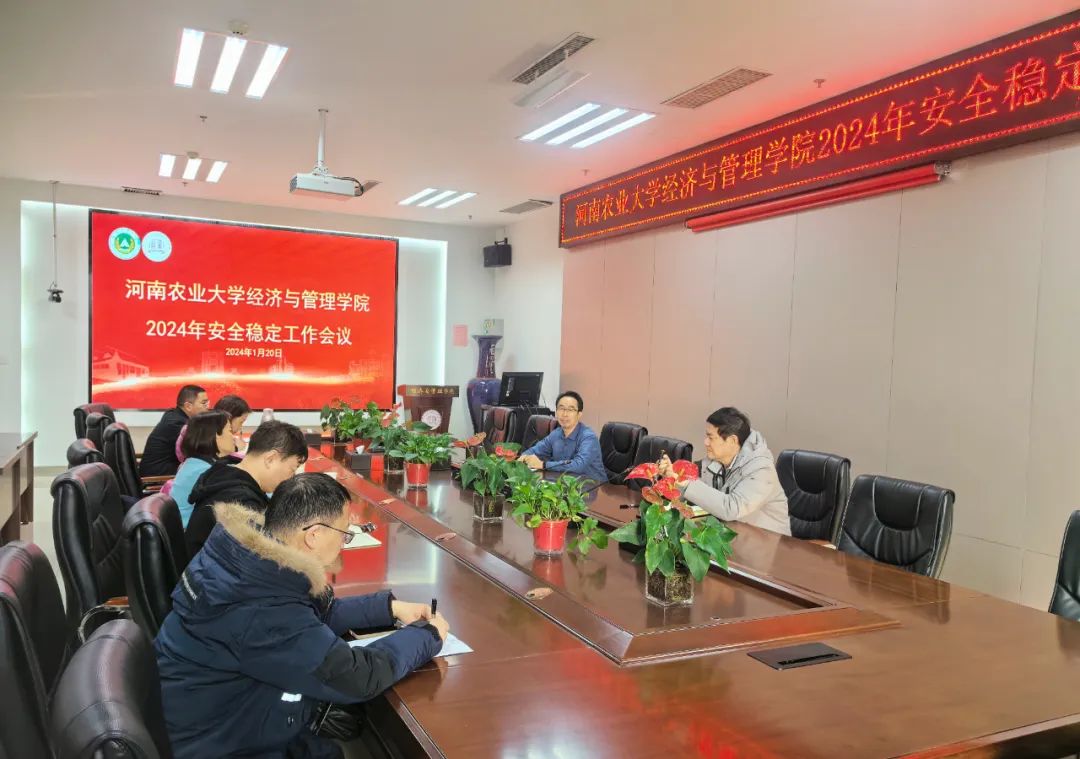 于2024年1月20日在龙子湖校区A座215会议室召开安全稳定工作会,院班子成员、团委书记、实验室主任参加会议。
