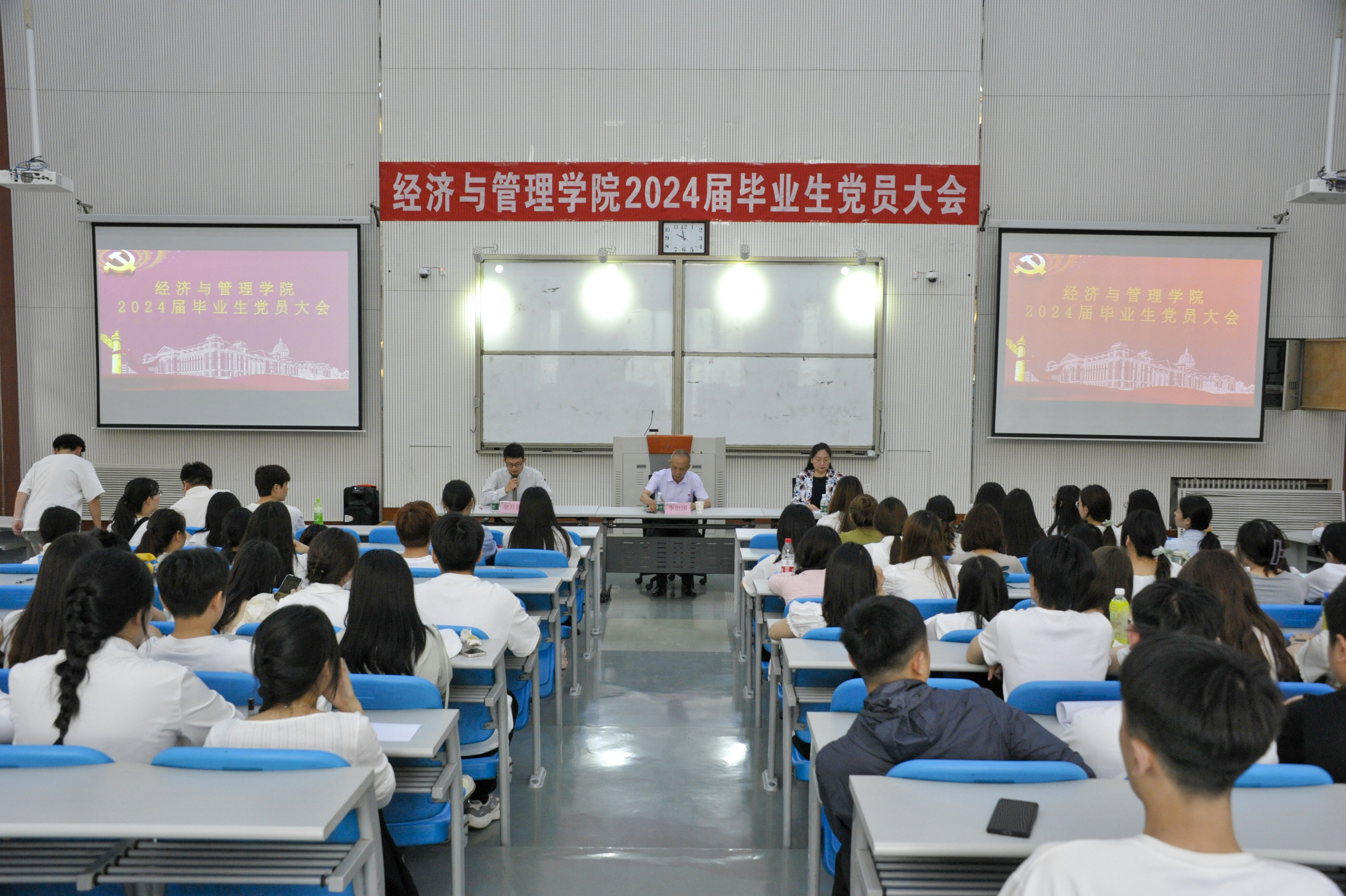 在大教室四召开毕业生党员大会。校关工委执行副主任兼秘书长李世国,院党委副书记李蓓蓓,院团委副书记余月圆及2024届毕业生党员到场参加,本次大会由余月圆主持。