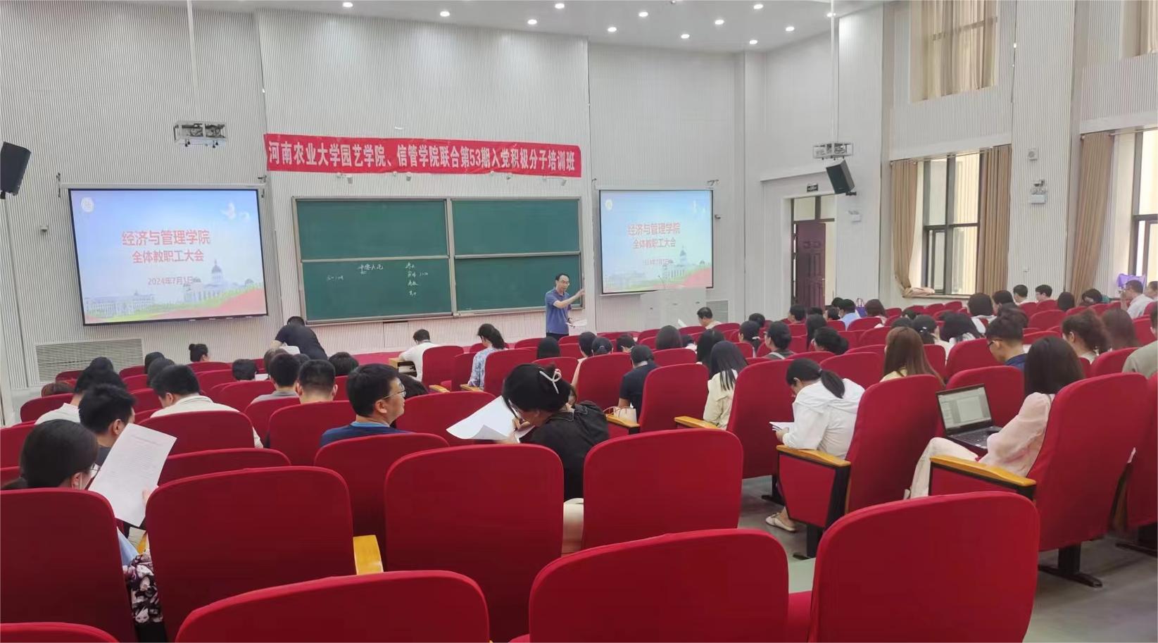 7月1日,德州扑克单机 于龙子湖校区繁塔楼CD之间一层大教室5召开全体教职工大会。学院领导班子及全体教职工参加此次会议,会议由院党委书记王宏立主持。