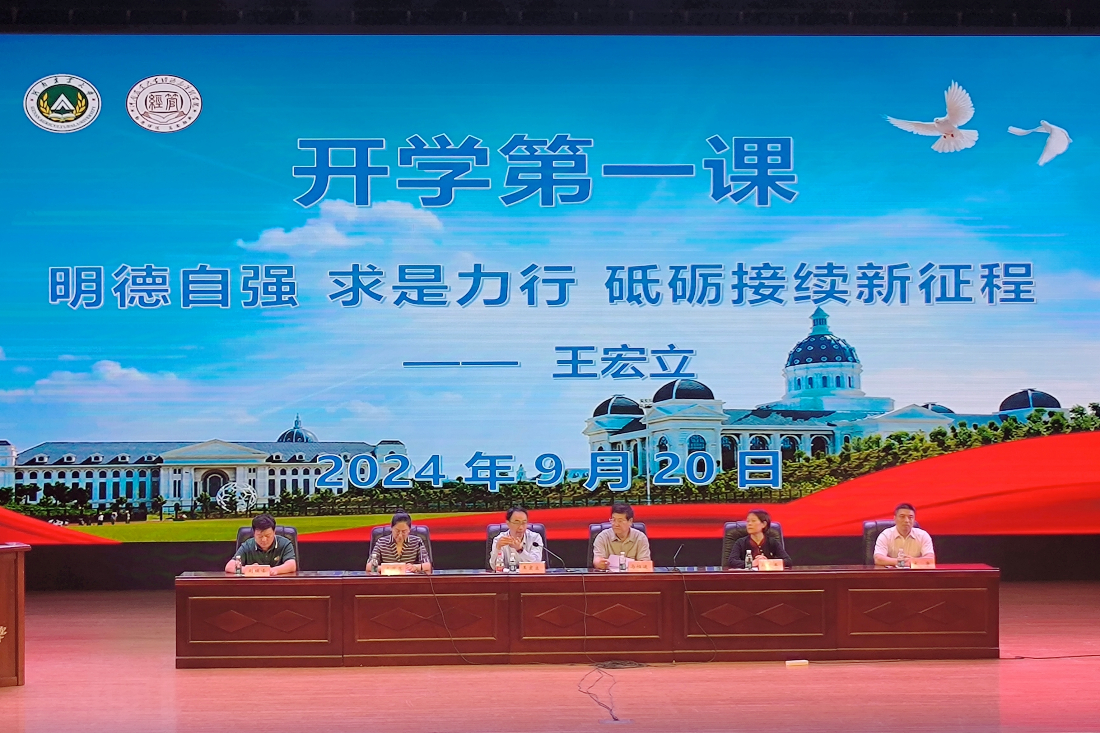 2024级本科生开学典礼在文化路大礼堂举行。院领导班子成员、团委老师、新生班主任及420名全体新生参加会议。会议由院党委副书记李蓓蓓主持。