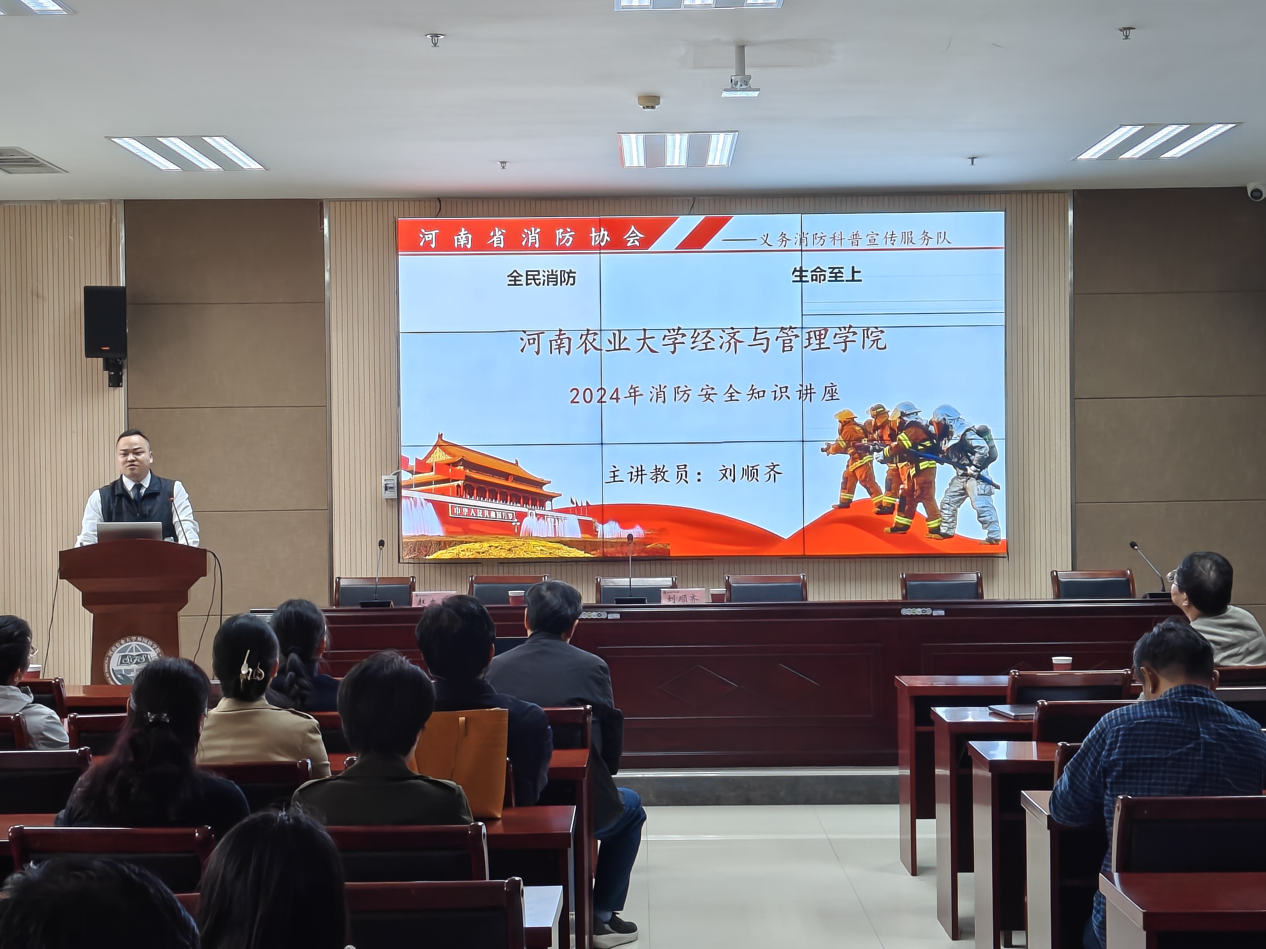 随后,河南省消防协会刘顺齐教员做《2024年消防安全知识讲座》。他结合近年来发生的真实火灾案例,深入浅出地向大家讲解了火灾的危害性、预防措施以及自救逃生技巧。同时,还详细介绍了各类消防器材的功能和使用方法,并现场演示了灭火器的正确操作步骤。