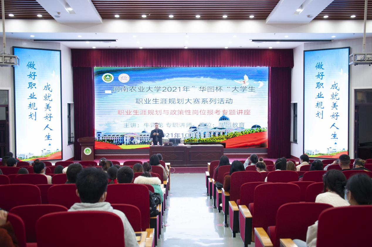 承办的河南农业大学2021年“华图杯”大学生职业生涯规划大赛之职业生涯规划与政策性岗位报考专题讲座于龙子湖校区繁塔楼大教室1举办。本次讲座特邀河南华图教育专职教师、河南华图言语学科师资负责人牛霄龙主讲,龙子湖校区各学院有意愿参加公职考试的本科生、研究生近二百人积极到场参加。