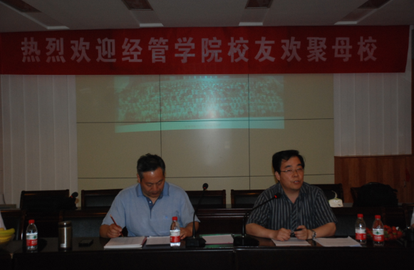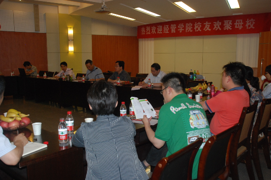 院党委书记张泽星首先向各位校友介绍了农大110年办学历史和100年兴办农业高等教育的发展历程。接着杨宪民副院长介绍了学校校庆日程和庆典活动具体安排,李建群副书记介绍了学院校庆筹备工作具体情况。最后吴院长详细说明了经管学院迎校庆接待校友方案,要求各联络人积极协助学院做好校友联络、统计返校参加校庆的校友人数、安排同学撰写回忆性文章、完善校友数据库及负责接待各班级校友等工作。
