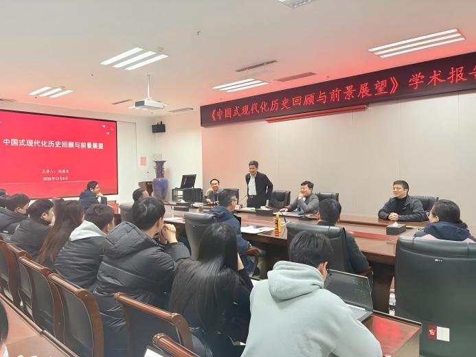 特邀河南省统计局一级巡视员、高级统计师赵德友博士在A215会议室作题为《中国式现代化历史回顾与前景展望》的学术报告。学院领导班子、教师及研究生代表共同参与,现场气氛热烈,学术氛围浓厚。