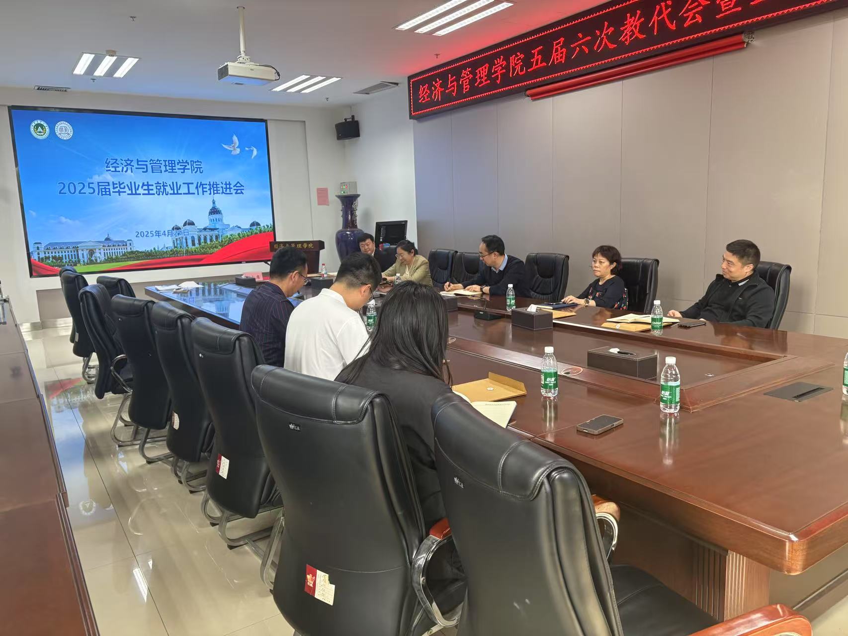 于A215会议室召开2025届毕业生就业工作推进会。院领导班子成员、各系主任、研究生毕业生导师、毕业生辅导员参加会议。