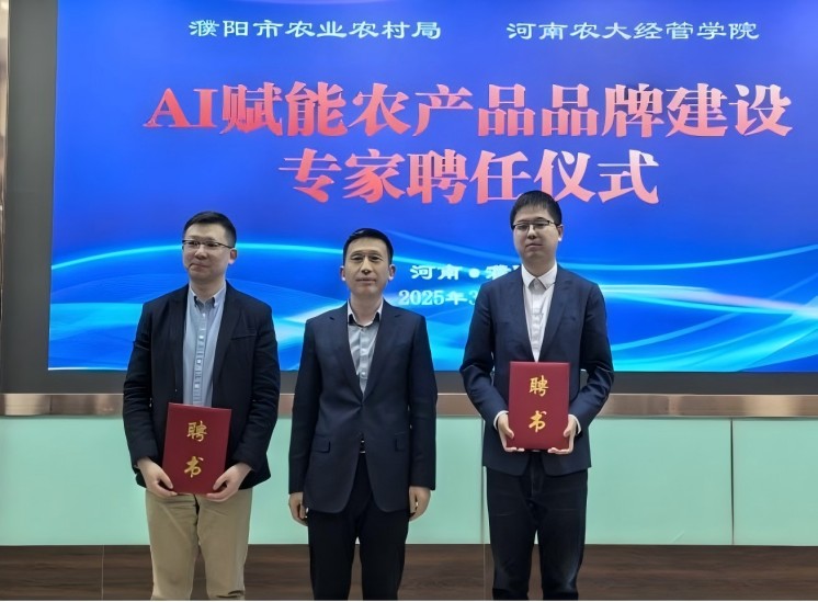 2025年3月21日,副院长赵友平带队赴濮阳市与濮阳市农业农村局联合举办AI赋能农产品品牌建设产学研合作交流会。濮阳市农业农村局党组书记、局长王军利、市现代农业发展中心主任丁君娜,学院教师代表张朝辉、安琪,双方相关职能部门负责人等参加本次会议。