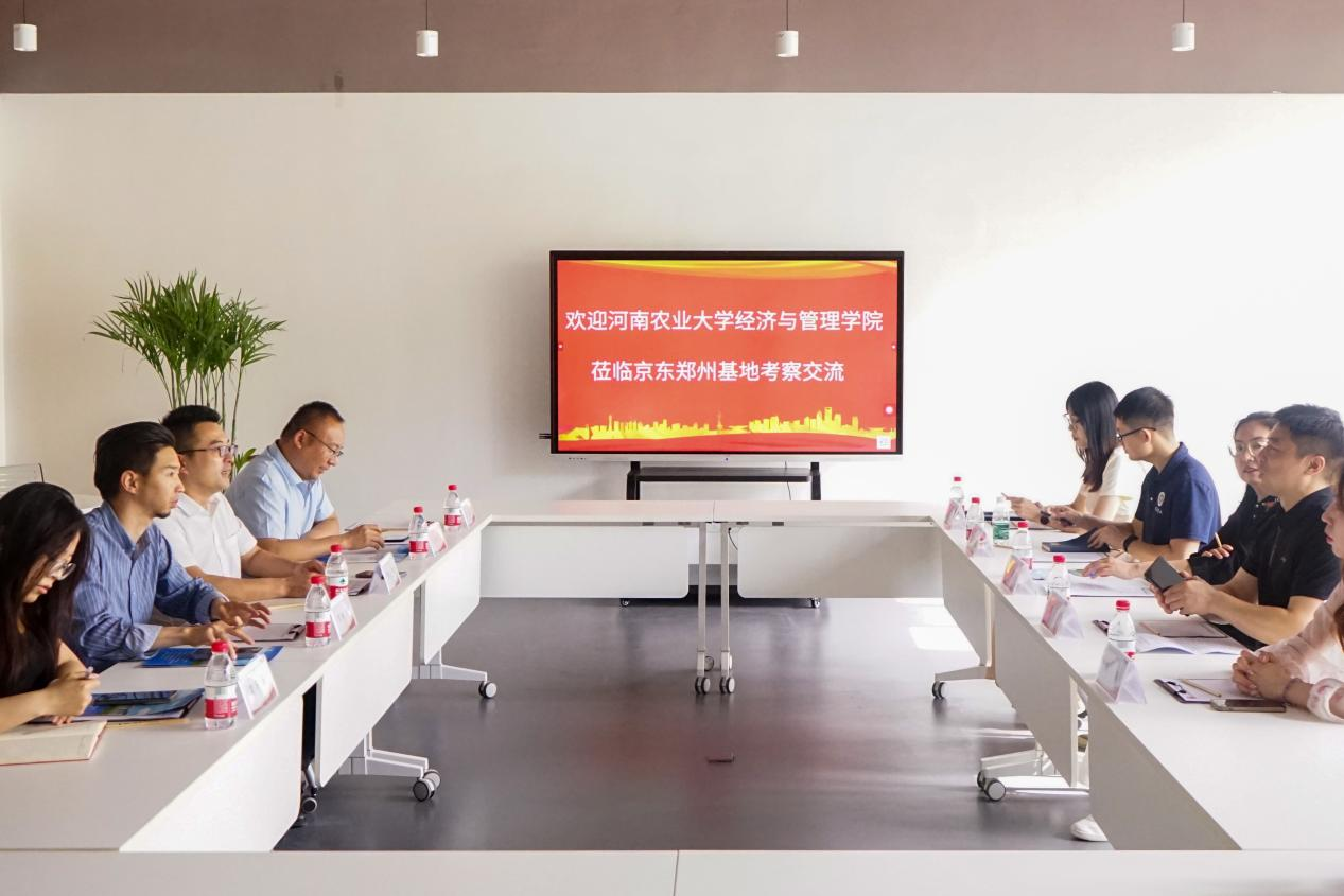 学院一行人首先来到了京东数字经济展示中心。在这里,与京东郑州基地负责人耿光辉等企业代表进行深入交流,通过观看图例、视频等多种形式,详细了解了京东科技在数字经济领域的创新成果和应用实践。在参观交流的过程中,李蓓蓓与企业方面就产学研合作、人才培养、技术支持等方面进行了深入探讨,共同探讨了合作的方式和机会。