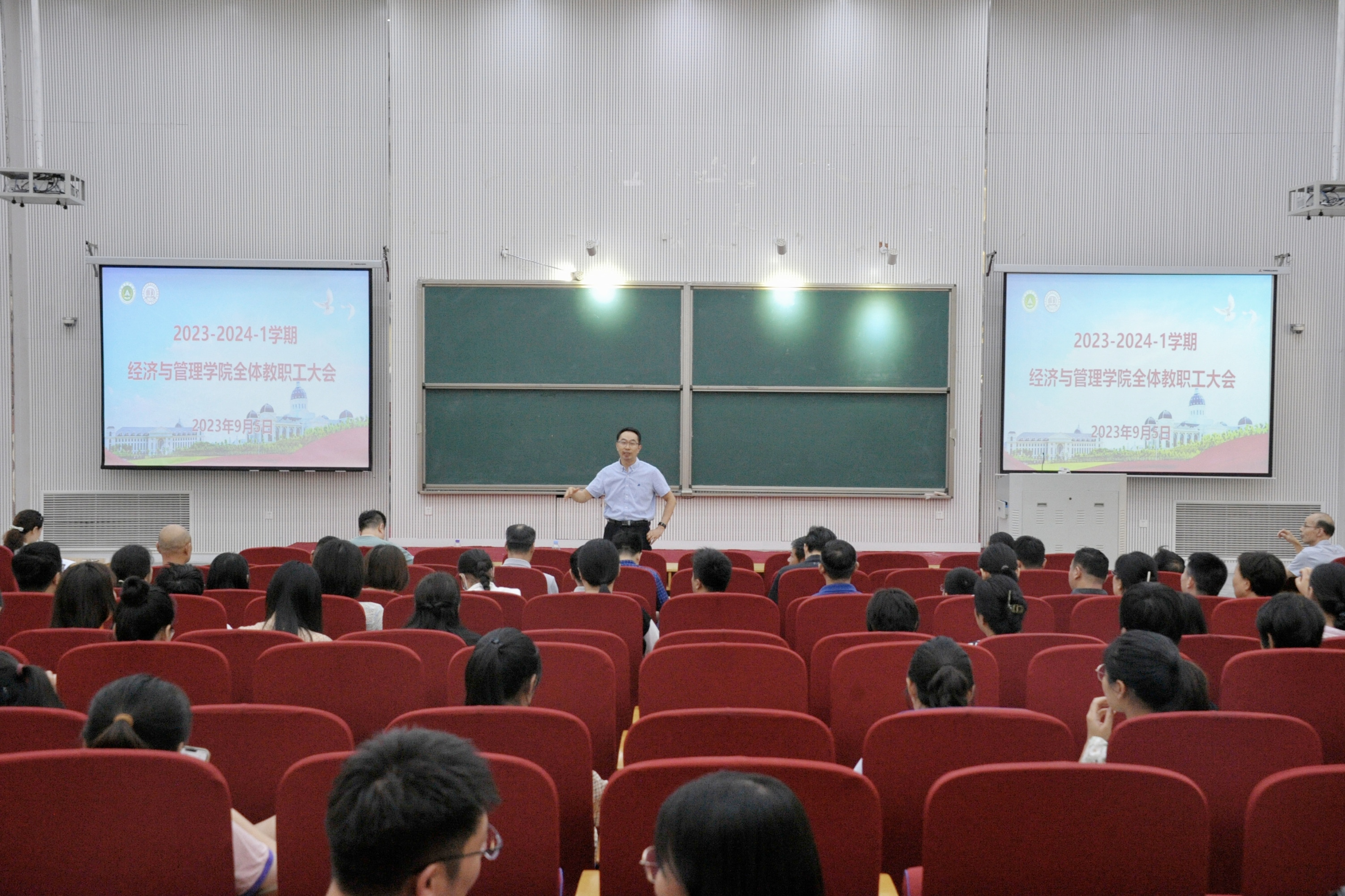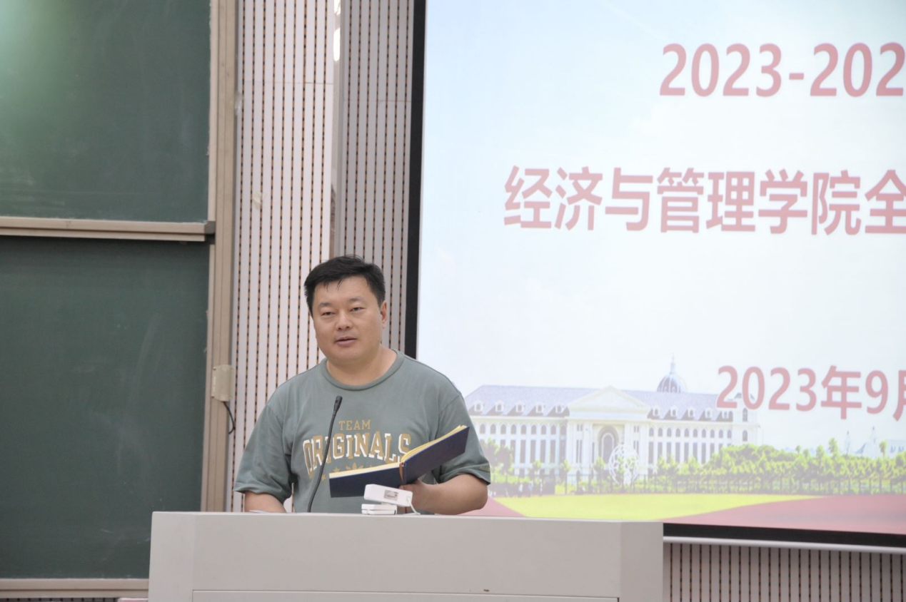 于大教室七召开新学期第一次全体教职工大会。学院领导班子及全体教职工参加会议,会议由院党委书记王宏立主持。