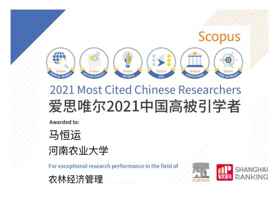 (通讯员:宋春晓) 2022年4月14日,全球性信息分析公司爱思唯尔(Elsevier)正式发布了2021年中国高被引学者(Highly Cited Chinese Researchers)榜单。其中,农林经济管理学科全国共有5名学者入选。教育部长江学者特聘教授、德州扑克单机