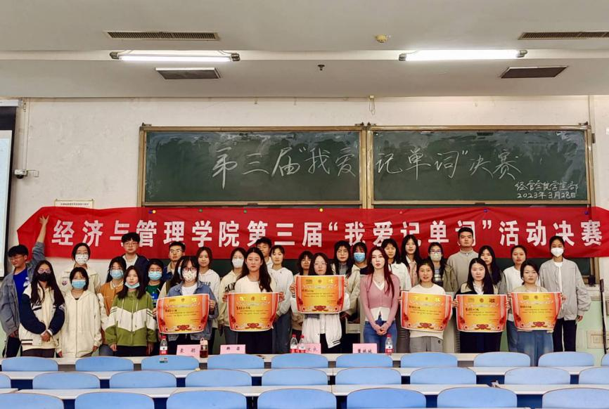 在文化路校区工程楼101举办第三届“我爱记单词”大赛决赛。经过初赛激烈的角逐,经济类22-1班、经济类22-3班、经济类22-4班、管理类22-1班、管理类22-2班、管理类22-5班六支队伍脱颖而出。