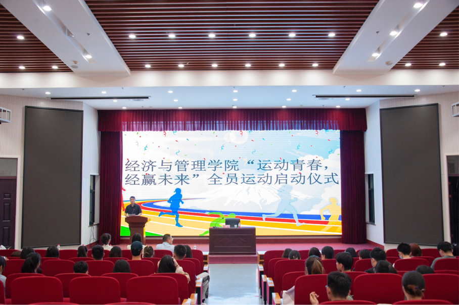 为贯彻落实习近平总书记关于深度开展新时代爱国卫生运动的重要讲话精神,积极响应二十大报告中建设“体育强国”的号召,促进经管学子德智体美劳全面发展,3月10日,德州扑克单机 在龙子湖校区大教室一举行“运动青春,经赢未来”全员运动启动仪式。院党委副书记方芳,团委书记杨鑫,团委副书记李月、余月圆,团委老师张桂玲、袁颖出席,德州扑克单机 21级学生组织成员积极参加。会议由余月圆主持。