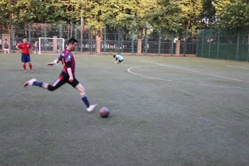 比赛开始前,两院队员们斗志昂扬,蓄势待发,在场地上进行热身活动。随着裁判的一声哨响,双方队员开始龙争虎斗。比赛伊始,先是经管学院队员抓住协防失误,果断插上断球后冷静推射远角得分,文法学院队员也凭借默契配合外道超车挤开后卫,抢在守门员出击前捅射入网,扳平场上比分。此后双方队员秉着健康向上的体育精神积极拼杀,凭借着精湛的球技和巧妙的战术你争我抢,互有进球,将本场比赛推向白热化阶段。稍作休息后,双方队员总结上半场的经验调整战术,下半场依旧精彩纷呈。文法学院队员用精巧的腿法、完美的盘带发起迅猛攻势,而经管学院队员出色的防守、精妙的配合也引起了阵阵喝彩,双方势均力敌、僵持不下,现场气氛热烈,比赛逐渐推向高潮。最后,经管学院发起反超, 精准传球、激烈快攻,凌空抽射破门得分,比赛战至终章。