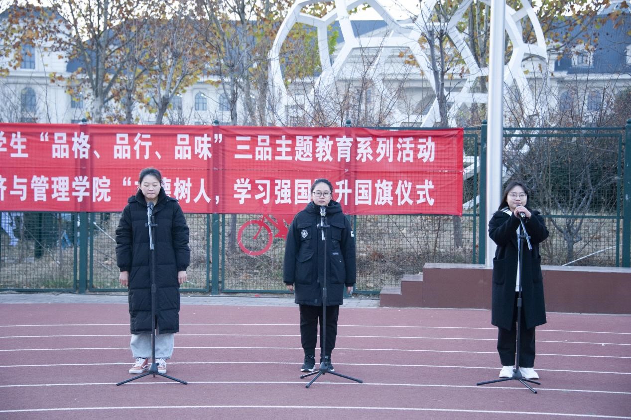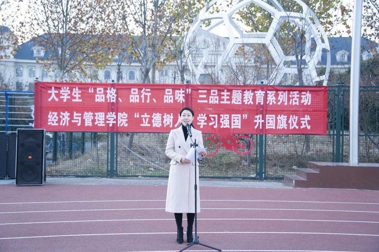 围绕大学生“品格、品行、品位”三品主题教育活动,在龙子湖校区操场隆重举行了以“立德树人,学习强国”为主题的升国旗仪式。院党委书记牛青杨、院党委副书记方芳、副院长赵翠萍、副院长刘瑞峰和全体团委老师出席此次升旗仪式。本次升旗仪式由院党委副书记方芳主持。