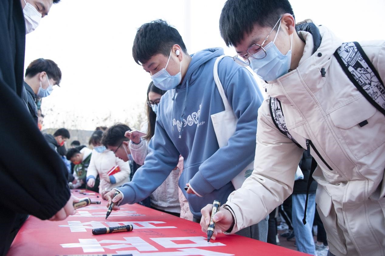 逐梦艺术团成员朗诵《引领青春正能量 我与祖国共奋进》,声音高亢,气势磅礴,道出了对祖国、对民族的热爱。合唱《少年中国》,歌声悠扬,唱出了作为大学生为兴党强国的决心和坚韧。活动最后,现场举行“培育优良学风,赓续百年征程”学风建设签名活动,老师和同学们积极参与。