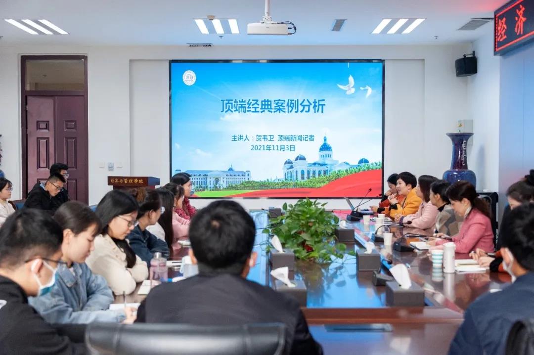 99级校友、顶端新闻记者贺韦卫主讲,院党委副书记方芳主持,德州扑克单机