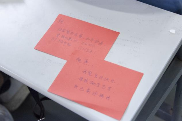 在余月圆老师的带领下,同学们手持红色信纸,书写下对党、自己、同学和学弟、学妹的期望和祝福,并互相交换贺卡,让薪火传承、祝福悠扬。