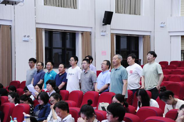课堂伊始,郝教授为在场教职工讲解了开声时唇部发力的技巧,并指出唱歌时要处在“松而不懈,紧而不僵”的最佳状态,及时调整呼吸、坐姿或站姿;演唱时可根据歌曲的内在情感赋予适当的动作,切忌矫揉造作,画蛇添足。在实践环节,郝教授带领全体教职工找寻歌唱时“哼鸣”的感觉,发音向哼鸣位置靠拢,进而引起胸腔共鸣。在开声训练之后,郝教授组织全体教职工以声部为单位进行分声部练习,高声部旋律悠扬,高亢激昂,低声部柔和浑厚,庄重低沉。教职工们全身心投入练习,纵情高歌,郝教授以钢琴伴奏,默契配合,在悠扬的歌声中本次博雅课堂圆满结束。
