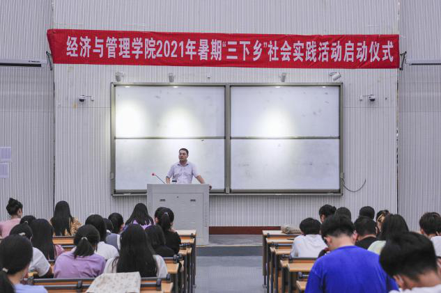 2021年暑期“三下乡”社会实践活动启动仪式于教学楼大教室5举行。本次启动仪式由院团委书记杨鑫主讲,团委老师李月、张桂玲、戚亚薇到场出席。