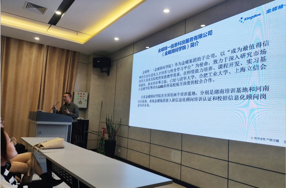 在此次宣讲会上,企业负责人刘鹏结合自己多年的从业经验向同学们详细介绍了ERP行业与相关专业的关系,为大家分析了ERP行业的发展现状,发展前景,普及了ERP知识,为即将踏入职场的大学生指出了一条良好的职业发展路径。