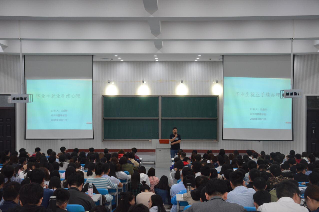 的考研状况,并向在场同学强调了本次大会的重要性。接着,王金铎老师就“毕业生就业手续办理”、“就业报到”、“人事代理”、“就业分类”、“档案派遣”、“毕业生户口管理”、“就业报告”等相关问题为毕业生们进行了详细地解答。同时,他还详细列举了“人事代理”的好处,并对档案传递的流程、就业协议的填写以及党团组织关系转接手续的办理等工作做了细致地讲解与说明。随后,王金铎老师还强调了毕业生在填写自传和登记表时应该注意的问题,并现场指导毕业生们应该如何填写自传和登记表。大会期间,同学们认真听讲,气氛良好。最后,王金铎老师向2018届毕业生们分享了自己的一些人生感悟。他希望毕业生们用积极乐观的态度去迎接人生的挑战,在新的起点上创造新的佳绩。