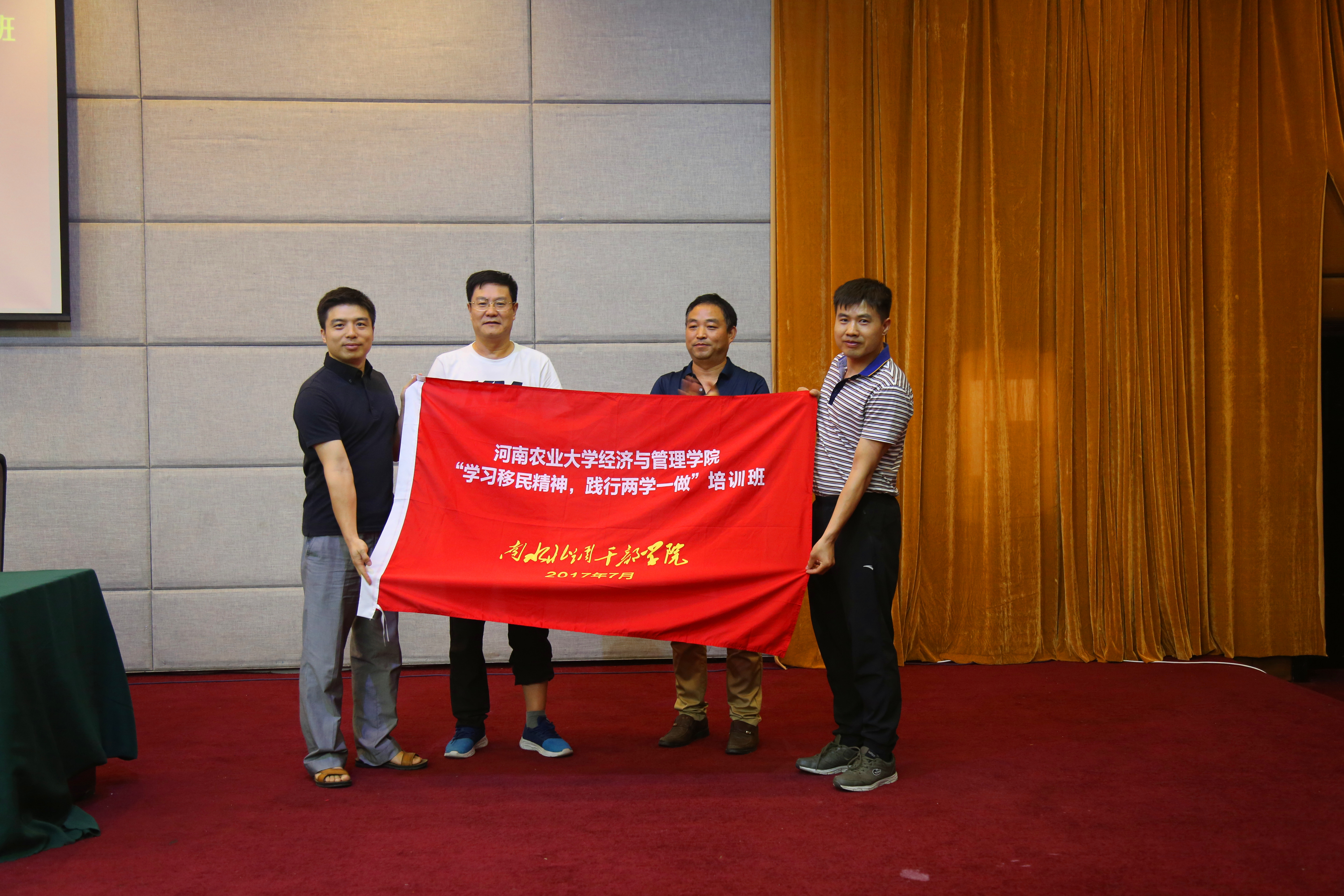 7月11—14日,经管学院在南阳南水北调干部学院举办“学习移民精神,践行两学一做”培训班,校党委书记程传兴、学院全体教工党员和部分党外教工代表参加了培训班。