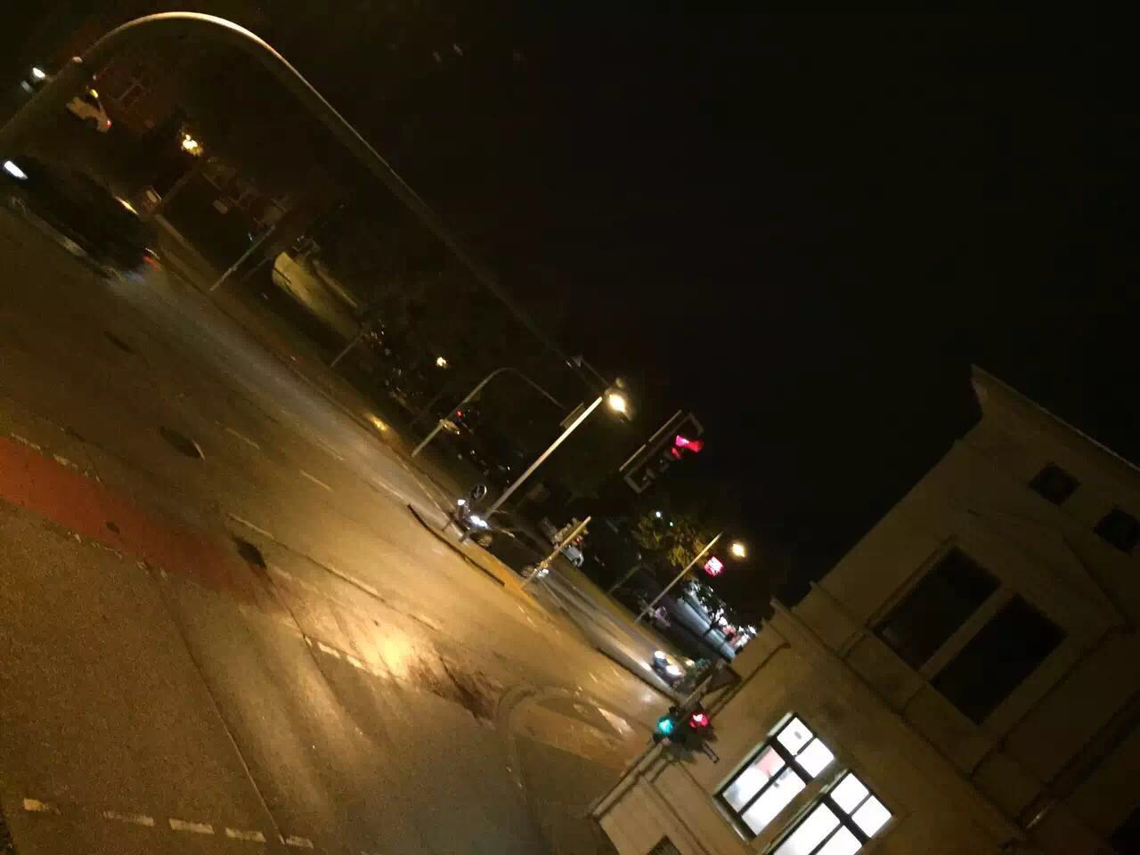 这里人口少很多,车速比较快,大部分人都很友好,自己注意一些,正常生活学习没有危险,但是天黑之后最好别出门,或者结伴而行。下图是一张天黑之后的街道照片: