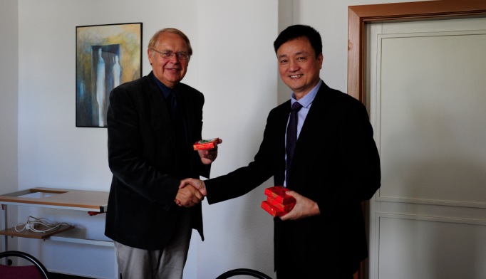 张冬平院长向德国安哈尔特应用技术大学校长Dieter Orzessek教授赠送礼物